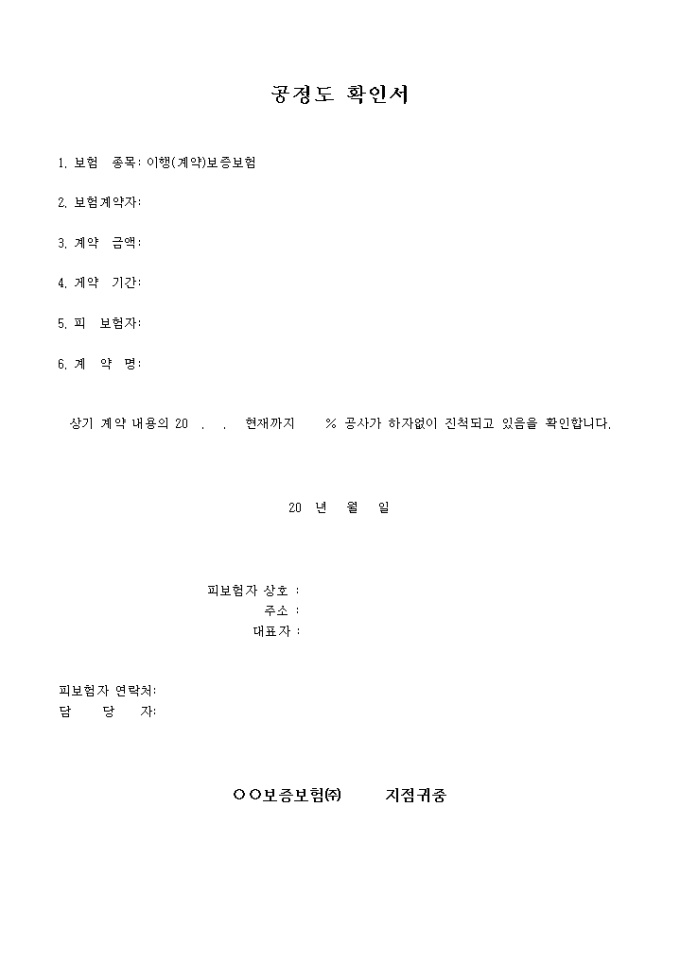 9,000원/월보험계약에 있어 공사가 하자없이 진행되고 있음을 확인할 때 사용하는 양식입니다.