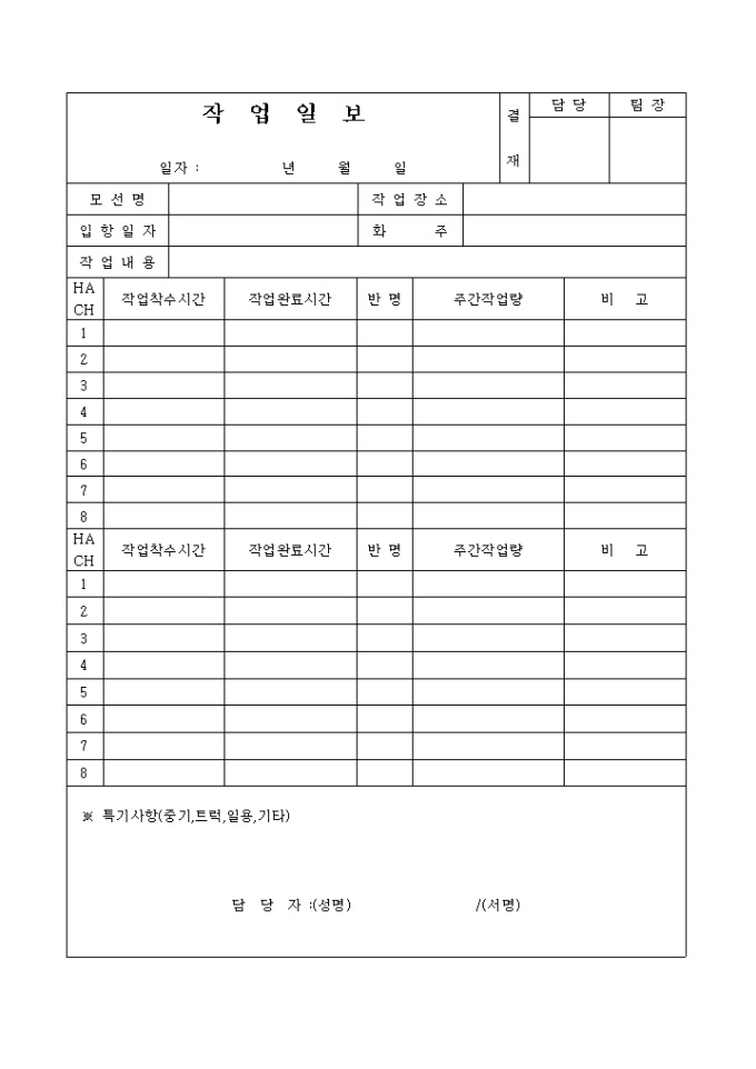 9,000원/월선박회사의 작업일보 양식으로 모선명, 작업장소, 입항일자, 화주, 작업내용, 작업시간등을 기재하도록 되어 있습니다.