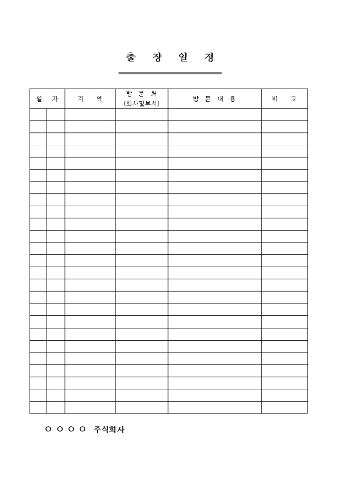 9,000원/월출장시 지역, 방문처, 방문내용등을 기재하는 일정표 양식입니다.