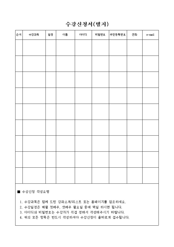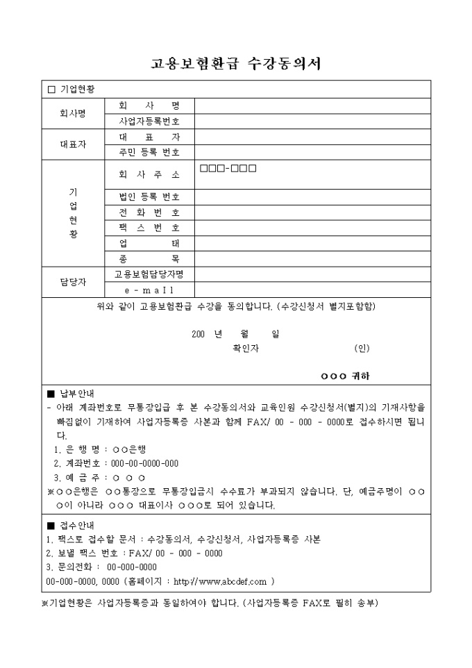9,000원/월고용보험환급에 대한 수강동의 양식입니다. 별첨으로 수강신청서 양식이 있습니다.