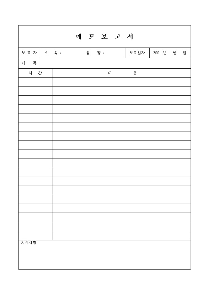 9,000원/월전화등으로 인한 메모를 보고할 때 사용하는 양식입니다.