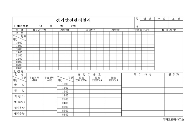 전기안전 관리일지(아파트)