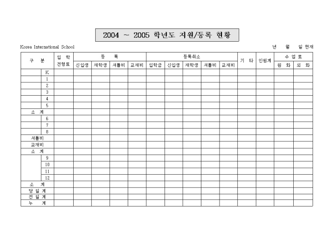 학원 입학 전형에 관한 지원 등록 현황을 관리하는 서식입니다.