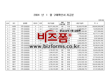 9,000원/월업체별 구매확인서 지급내역을 리스트로 만든 양식입니다
