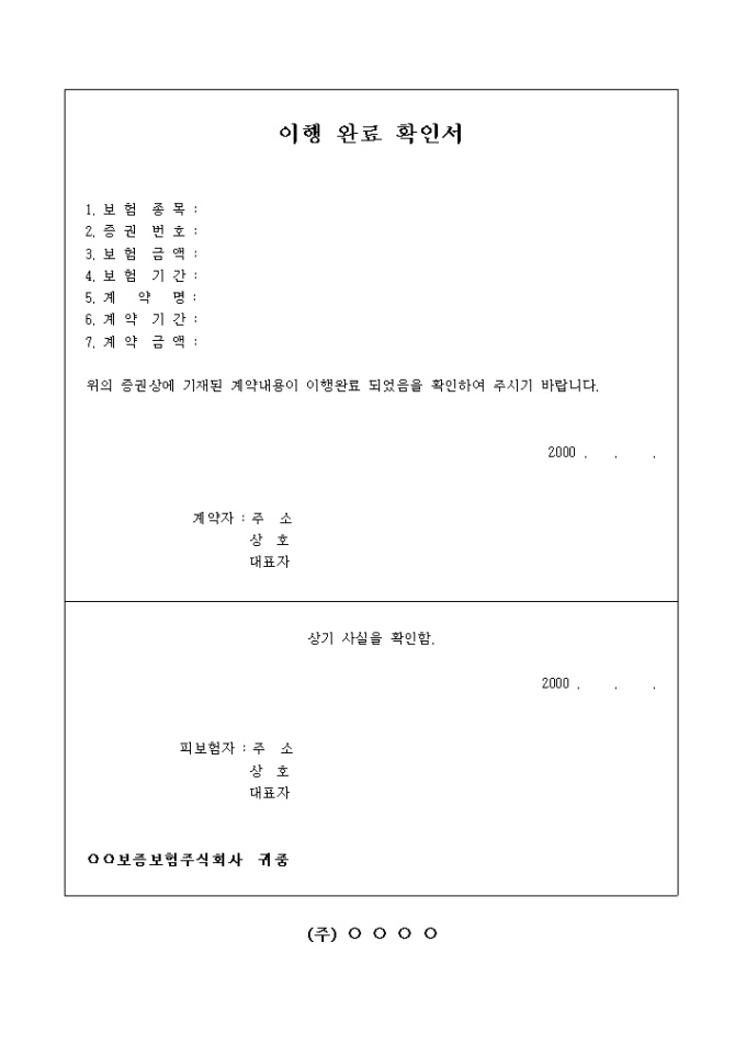 증권상에 기재된 계약내용이 이행완료 되었음을 확인요청할 때 사용하는 양식입니다.