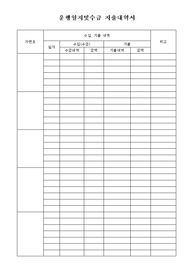 9,000원/월각 업무용 차에 따른 수입,지출여부를 기록하는 양식입니다.