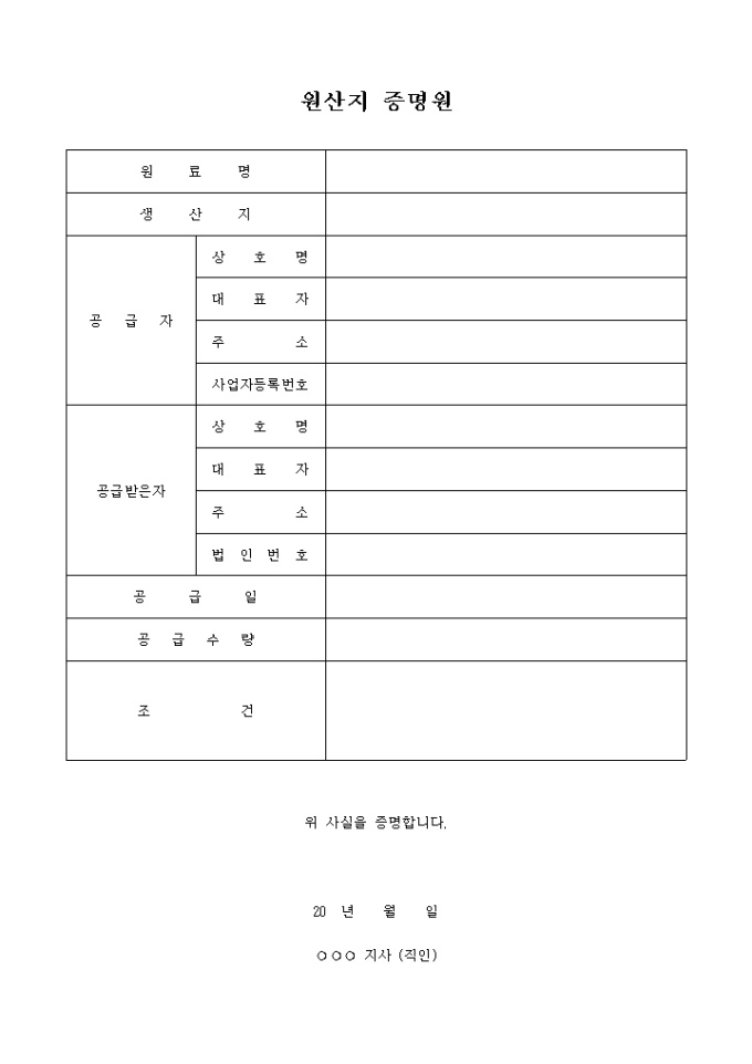 9,000원/월물품 납품에 쓰이는 원산지 증명서식입니다.