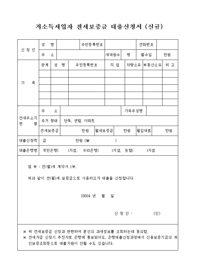 9,000원/월전(월)세 보증금으로 사용하고자 대출을 신청하고자 할때 사용하는 양식입니다.