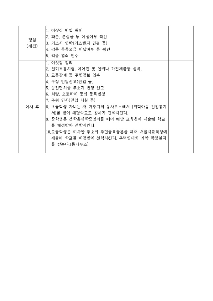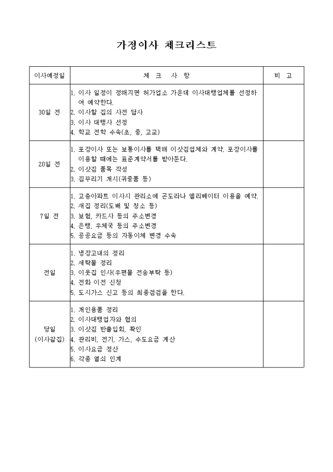 9,000원/월이사시 이사예정일에 따른 체크사항을 확인할 수 있는 양식입니다.