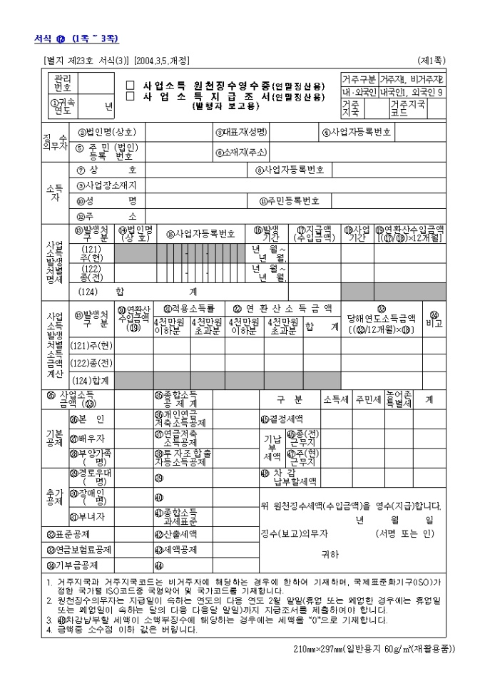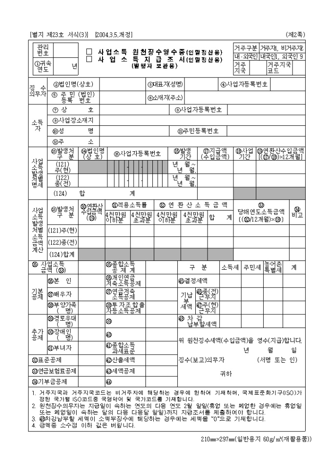 사업연말 원천징수영수증(별지 제23호 서식(3))(2004.3.5.개정)