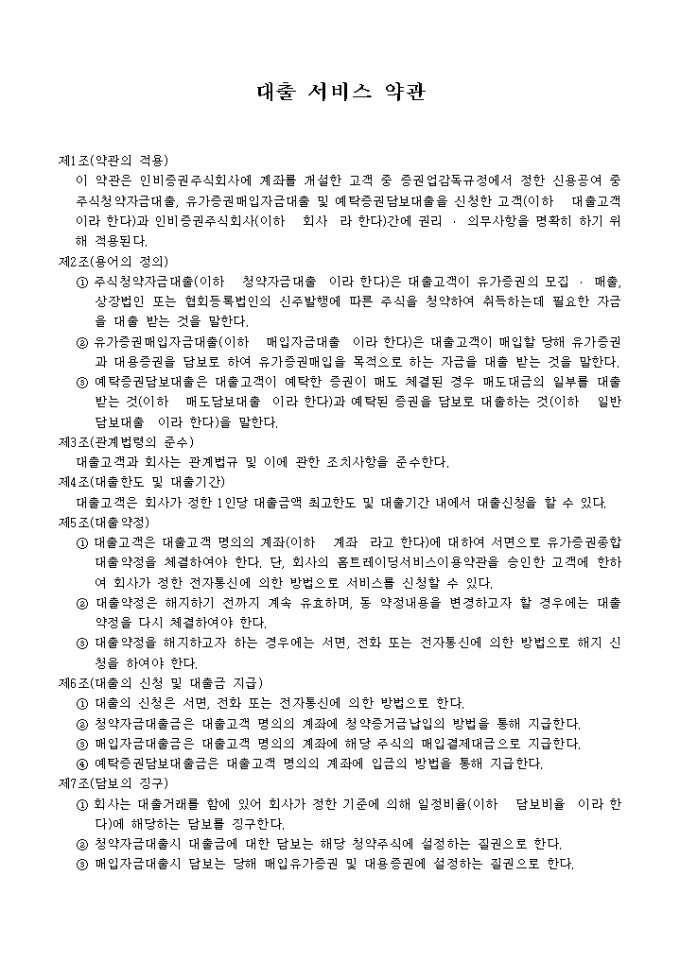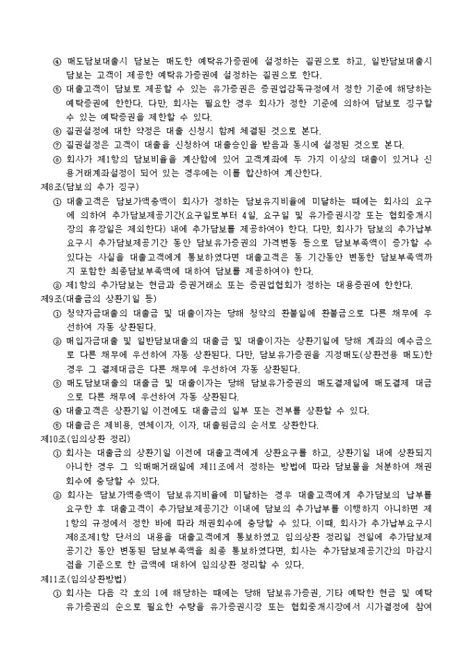 9,000원/월증권주식회사의 대출 서비스 약관입니다.