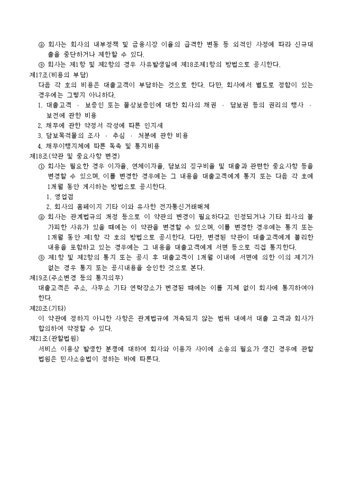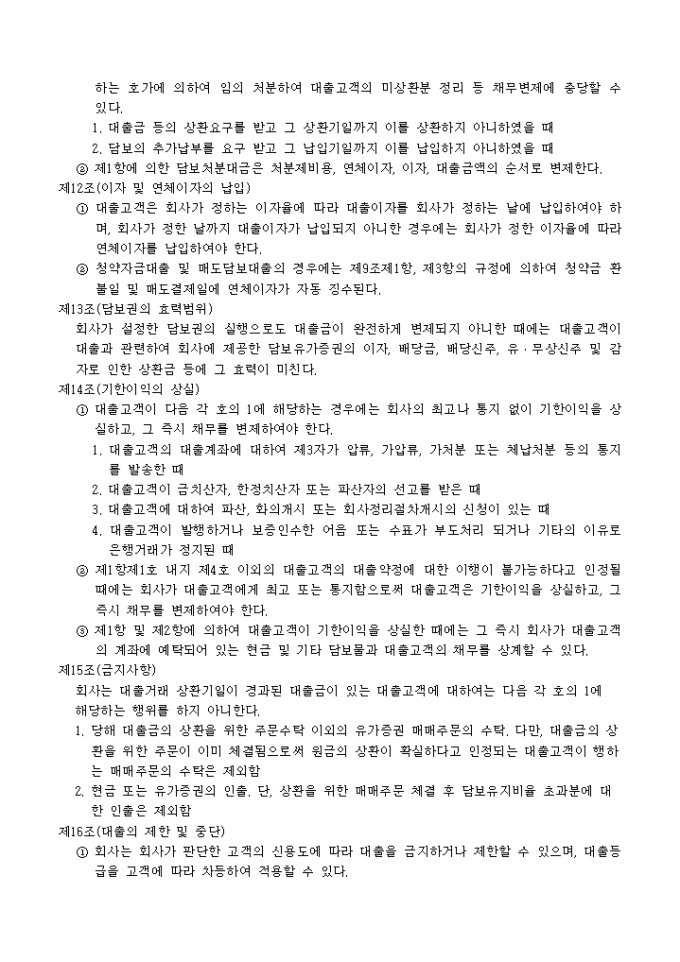 제16조(대출의 제한 및 중단)