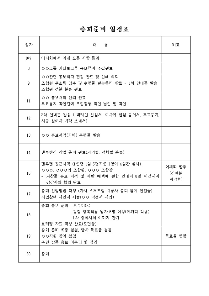총회준비 일정표