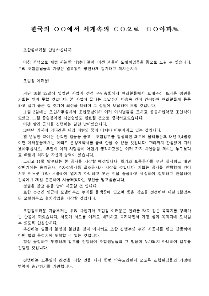조합원여러분 안녕하십니까.