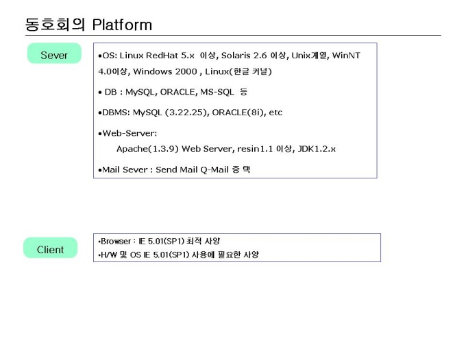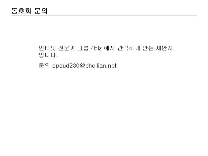 정보의 교류, 제약의 탈피, 커큐니케이션, 사이트활성화, 동호회의 도입효과 및 특장점, 동호회의 적용대상기업, 동호회의 서비스 구성도, 동호회의 Platform, 솔루션 업그레이드 및 A/S, 동호회 문의 기획서 (동호회) 예제입니다.