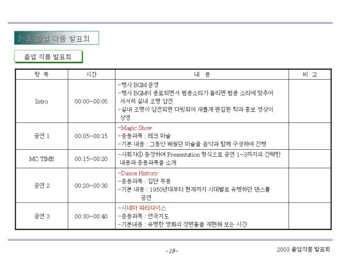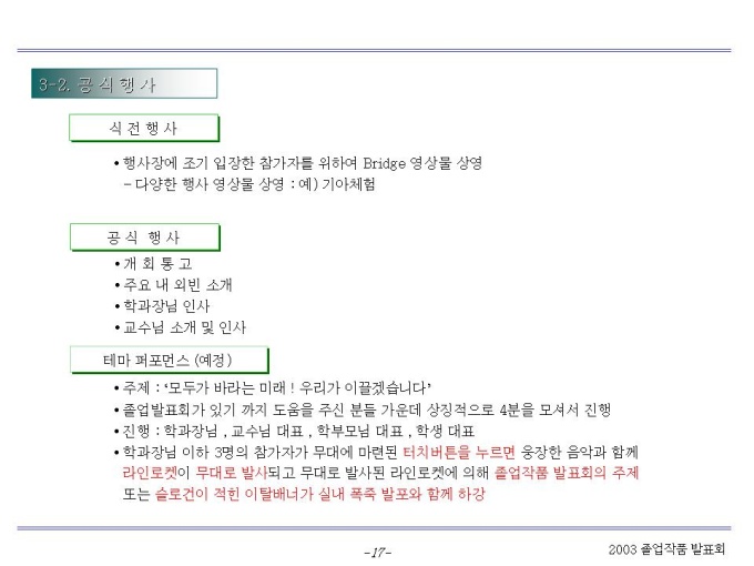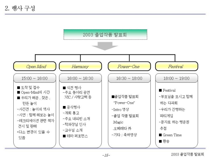 기획서 (졸업작품회) Ⅰ. 전략 부문 Ⅱ. Program 부문 Ⅲ. 발표회 운영 부문