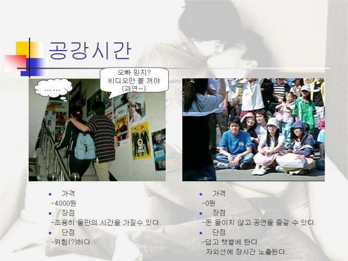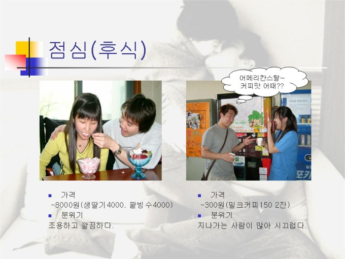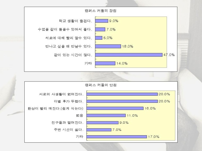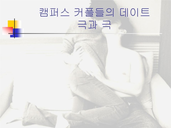 프리젠테이션 자료 (결혼과 가족) 캠퍼스 커플들의 데이트 극과 극에 대한 내용입니다. 캠퍼스 커플의 장단점과 커플들의 데이트를 비교한 내용입니다.