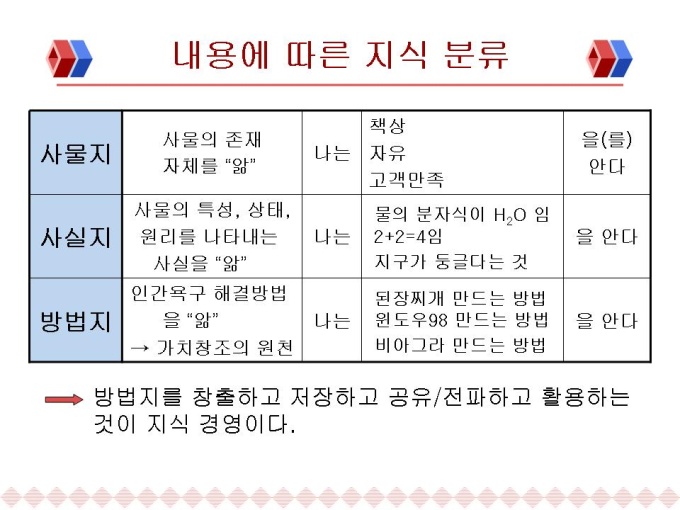내용에 따른 지식 분류