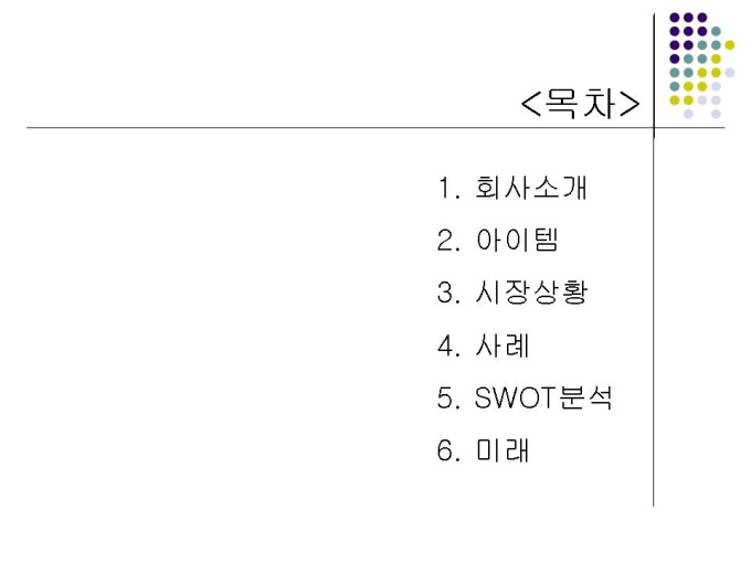 회사소개 아이템 시장상황 사례 SWOT분석 미래 프리젠테이션 자료 (경영정보_전자상거래) 입니다.