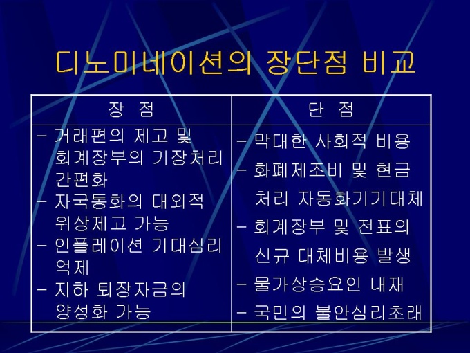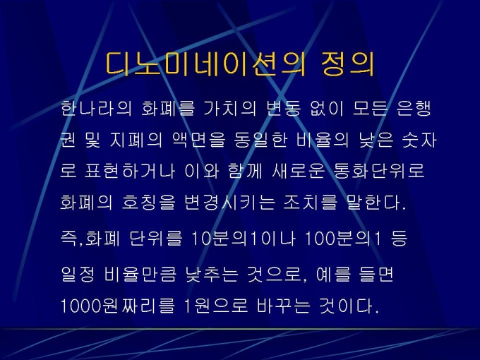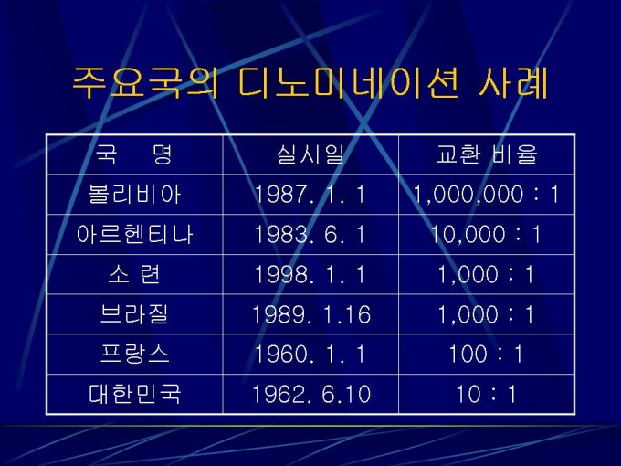 프리젠테이션 자료 (경제_디노미네이션) 입니다.