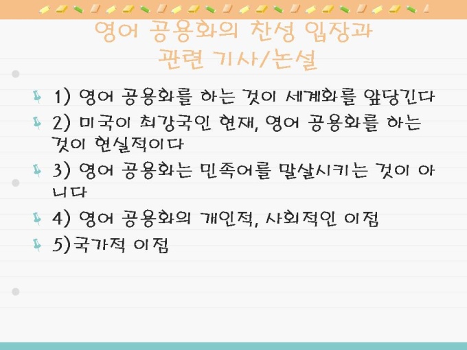 7. 영어 공용화의 찬성 입장과 관련 기사/논설