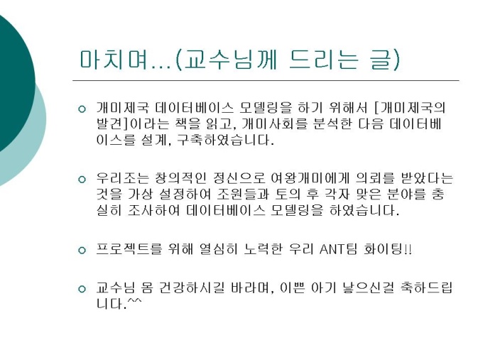 프리젠테이션 자료 (데이터베이스) 입니다.