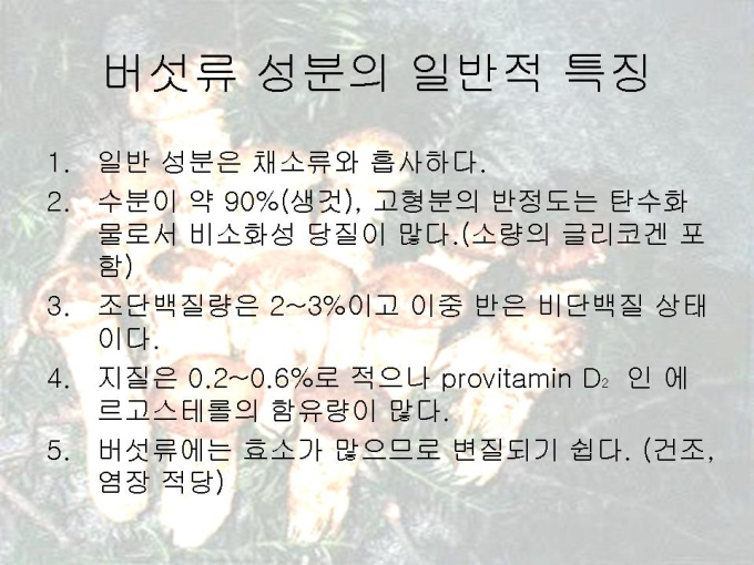 2.버섯류 성분의 일반적 특징
