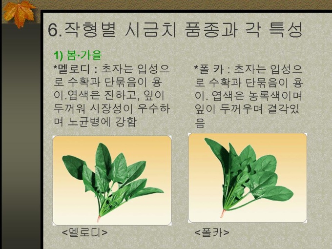 6.작형별 시금치 품종과 각 특성