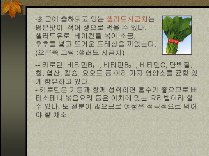 프리젠테이션 자료 (식품영양_시금치)