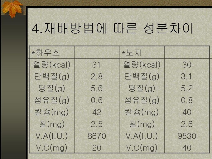 4.재배방법에 따른 성분차이