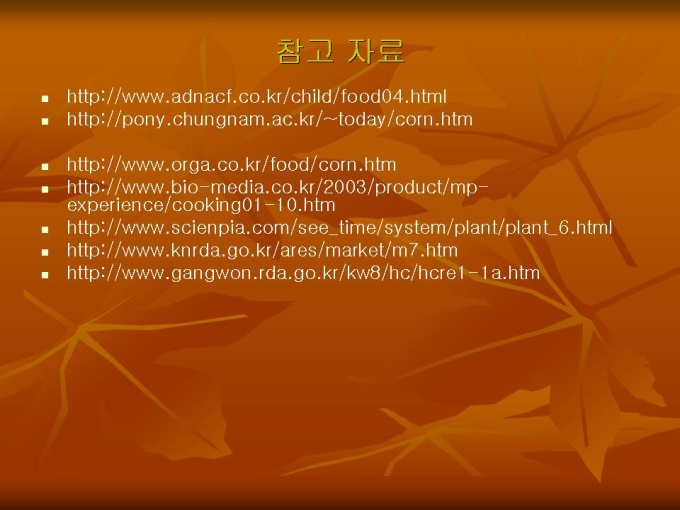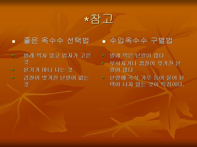 프리젠테이션 자료 (식품영양_옥수수)