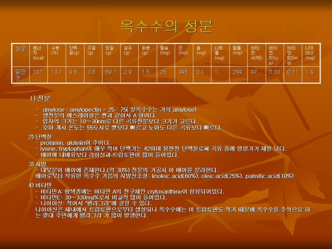 6.옥수수의 성분