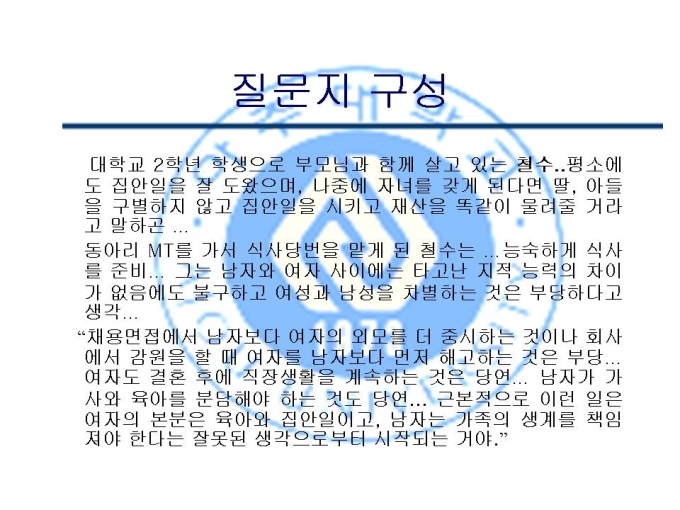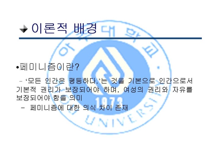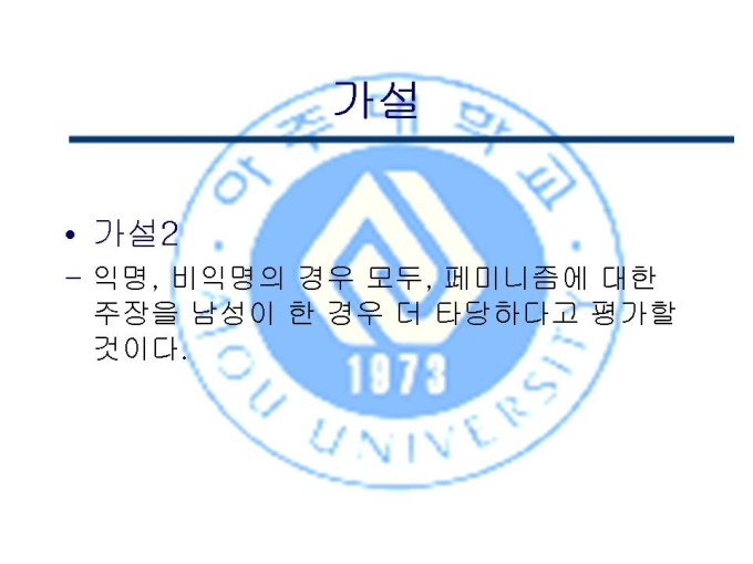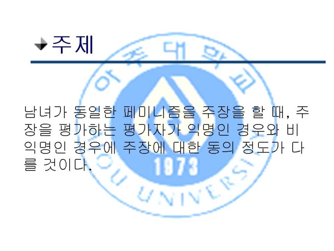 프리젠테이션 자료 (여성심리학_페미니즘) 1.주제 2.이론적 배경 3.가설 4.연구방법 5.결과 6.논의 7.다음 실험을 위한 제안