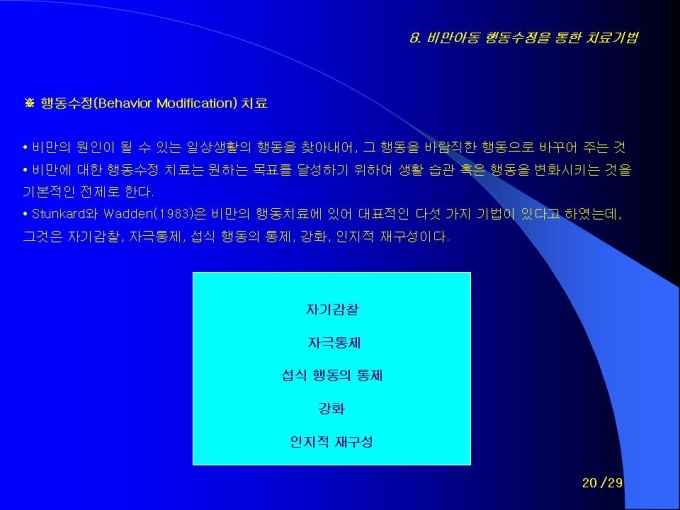 9.비만아동 행동수정을 통한 치료기법