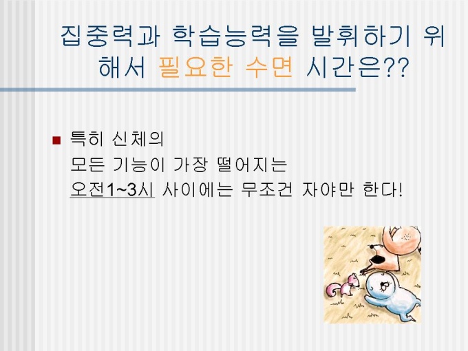 프리젠테이션 자료 (수험생 수면관리) 입니다.