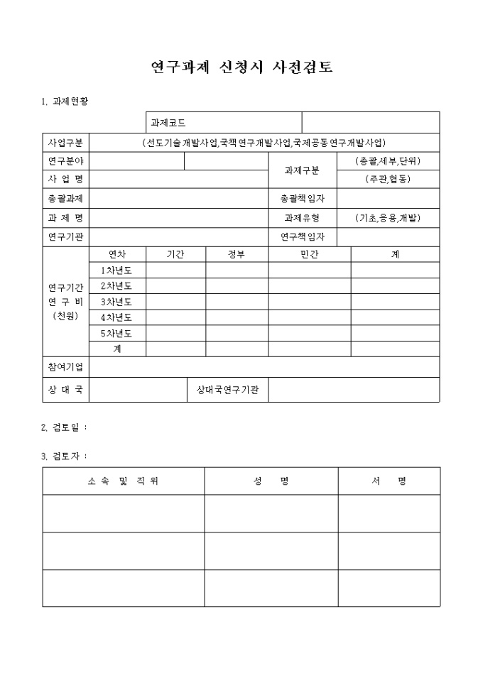 [과학]연구과제 신청시 사전검토 양식입니다.