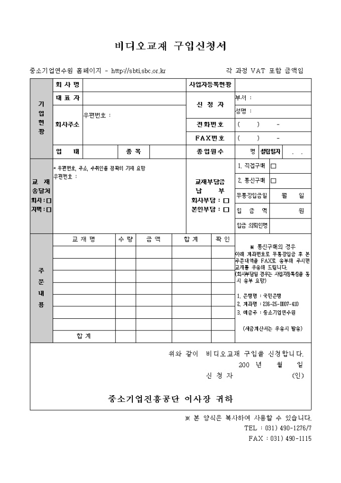 9,000원/월중소기업연수원 비디오교재구입 신청서