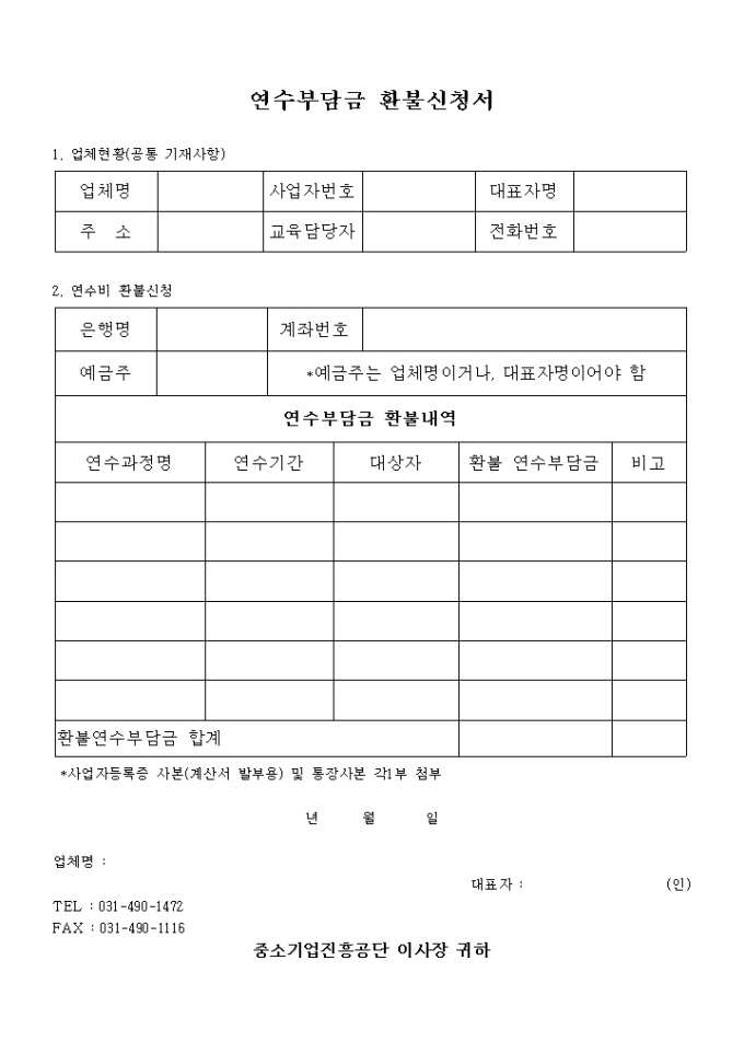 중소기업연수원 연수부담금 환불신청서