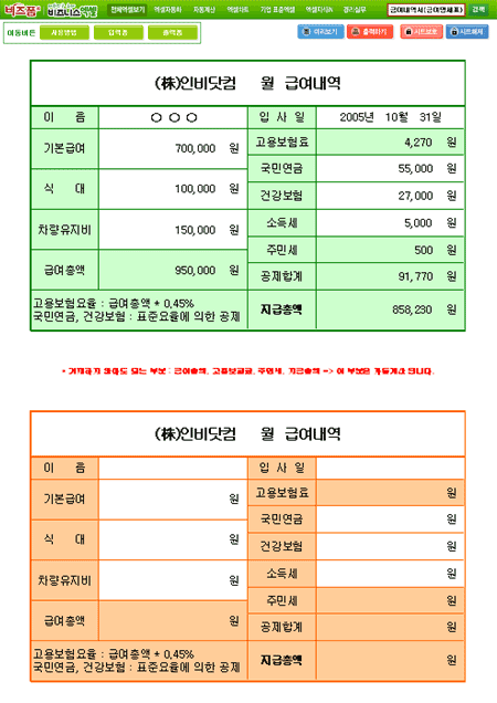 급여와 간단한 4대보험관련 내역만을 다룬 엑셀 급여명세서 자동화 양식입니다.
