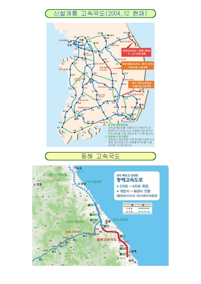 9,000원/월전국 신설개통 고속국도 (2004.12 현재)
