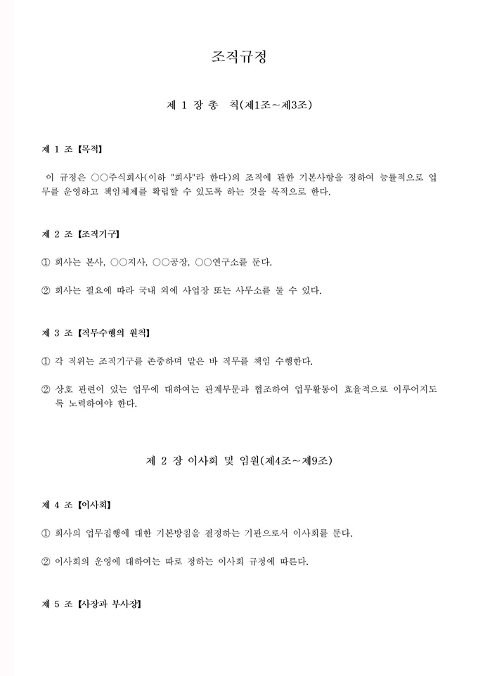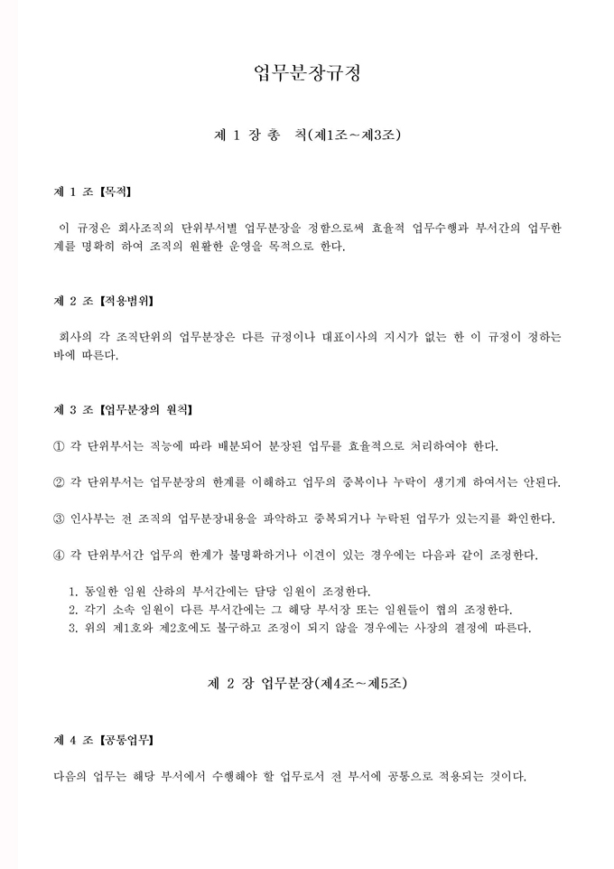 회사업무관련규정집모음(사규,조직규정) 조직규정