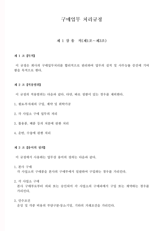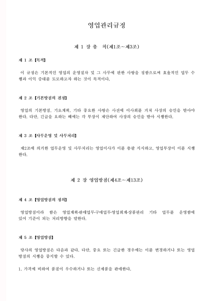 9,000원/월회사업무관련규정집모음(사규,조직규정) 영업및구매