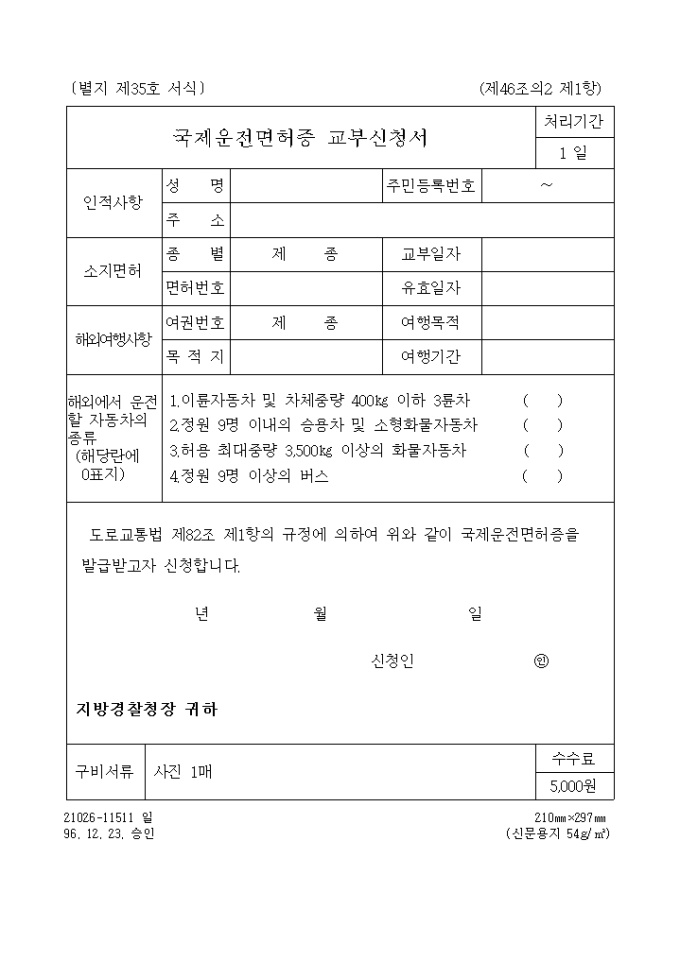 9,000원/월(교통) 국제운전면허증 교부신청서