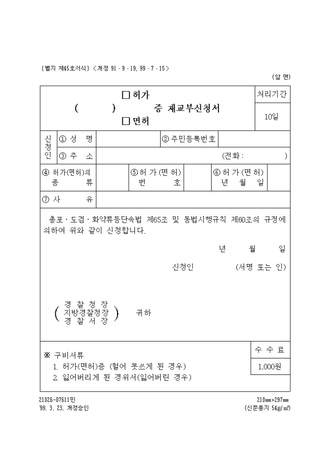 9,000원/월(생활안전) (허가,면허)증재교부신청서