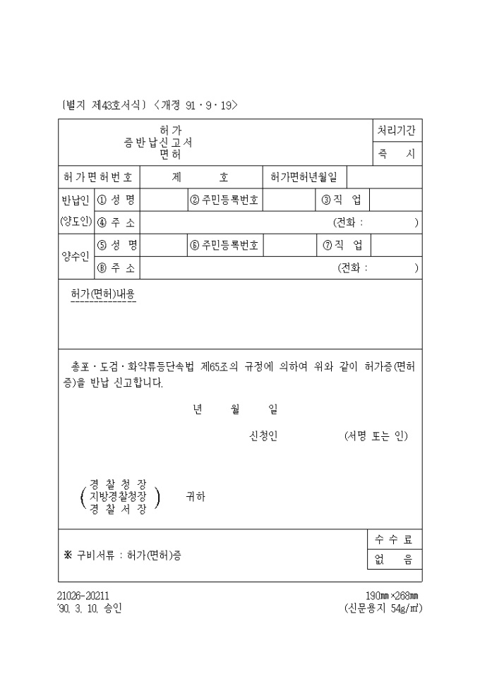(생활안전) (허가,면허)등반납신고서