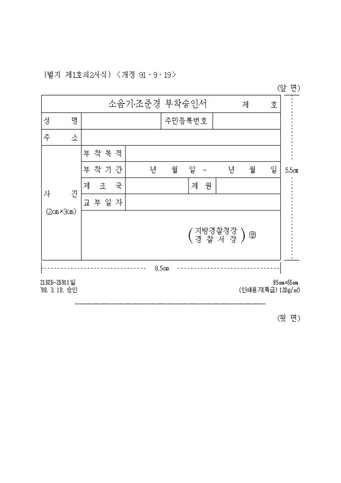 (생활안전) 소음기, 조준경부착승인서(개인)