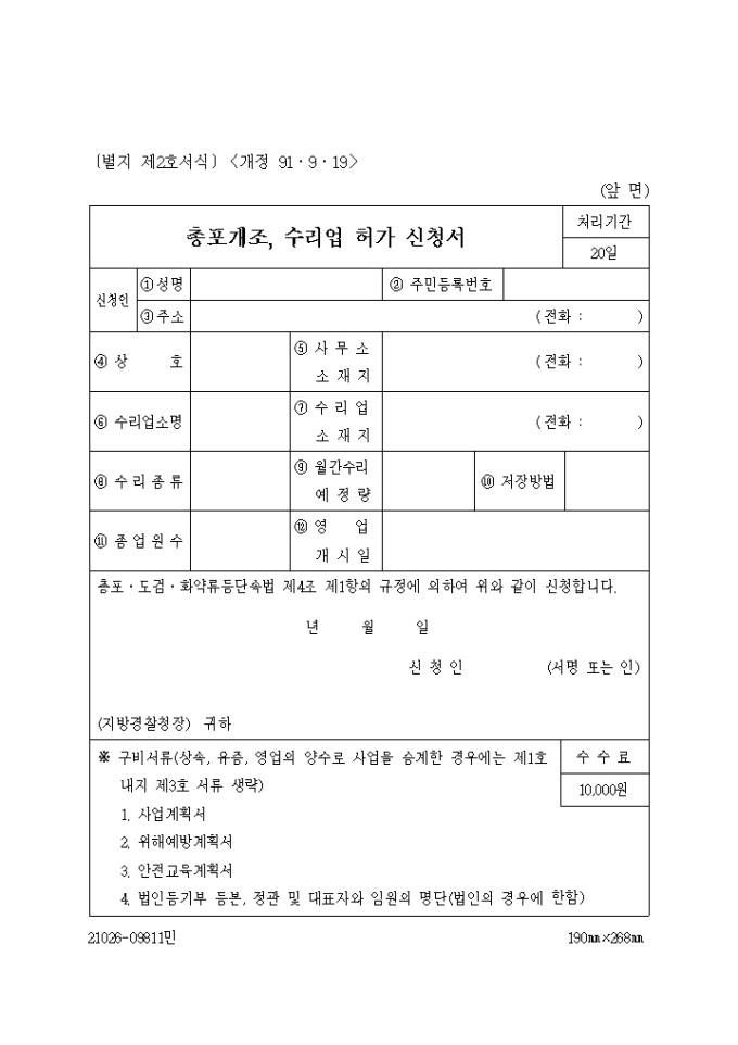 (생활안전) 총포개조, 수리업허가신청서