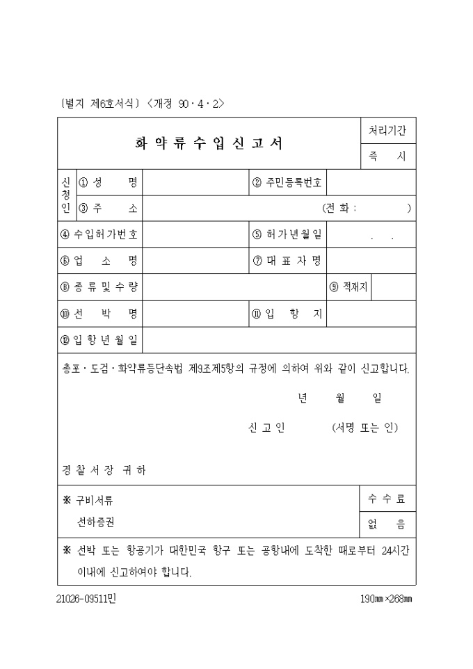 (생활안전)화약류 수입신고서