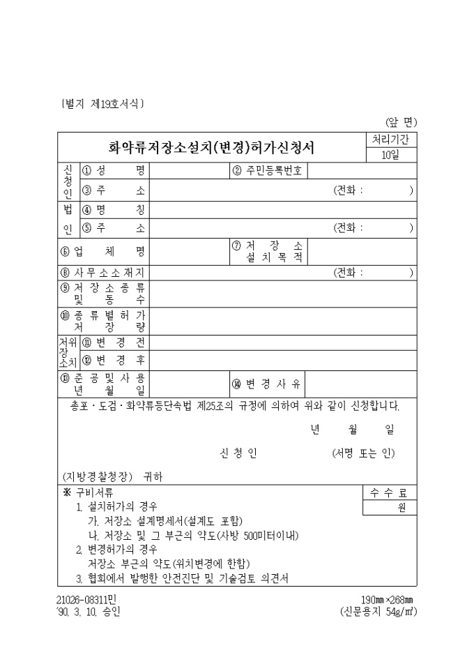 9,000원/월(생활안전) 화약류 저장소변경 허가신청서
