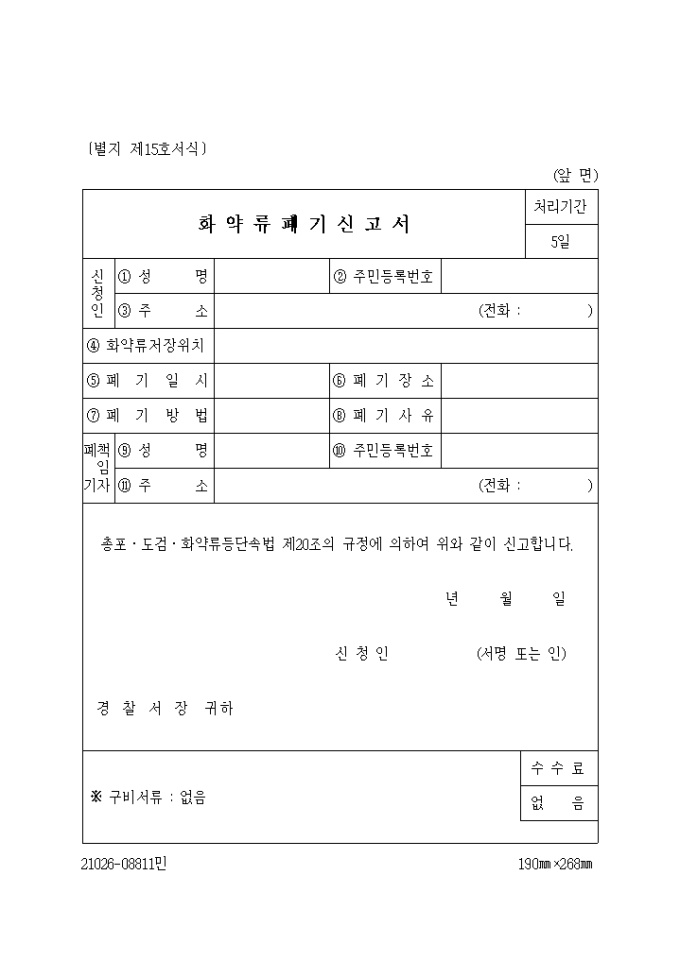 (생활안전) 화약류 폐기신청서